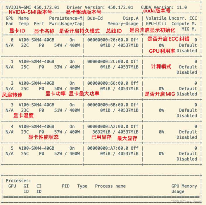 风扇转速:主动散热的显卡一般会有这个参数,服务器显卡一般是被动散热,这个参数显示N/A。